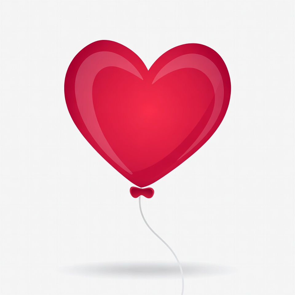 A shiny red heart-shaped balloon floats against a white background. It features a small bow at the bottom and a thin white string attached. The illustration has a glossy, 3D appearance with subtle shadows.