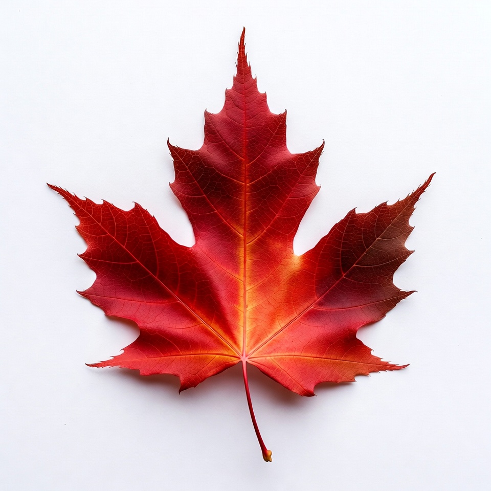 Canadian symbol, autumn leaf, fall leaf, foliage, isolated leaf, leaf veins, nature, plant leaf, red leaf, serrated edges, vibrant red, white background, maple leaf