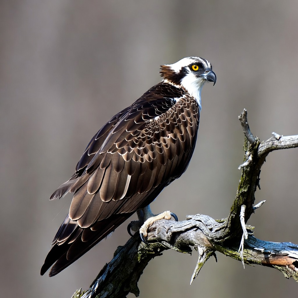 bird, birdwatching, brown body, falconry, feathers, fish eagle, hooked beak, isolated background, nature, perched, raptor, sea hawk, talons, tree branch, white head, wildlife, wings, yellow eyes, osprey