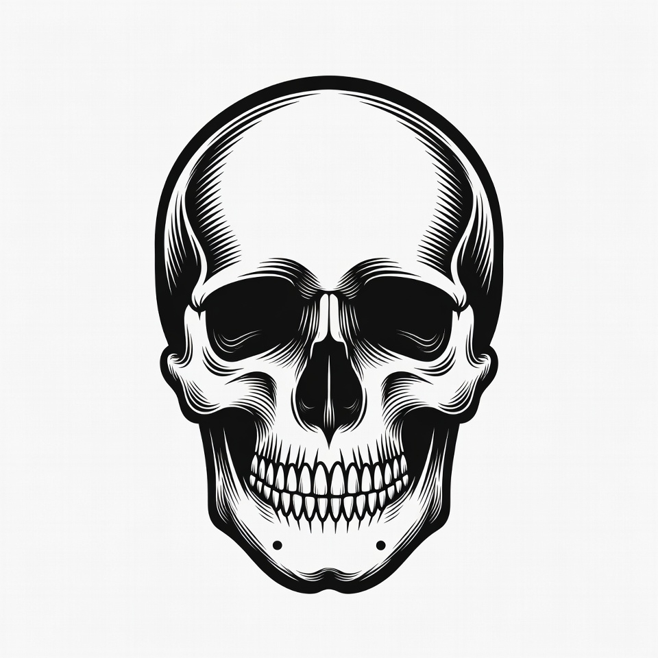 anatomy, black ink, bony face, clipart, death symbol, detailed skull, grinning skull, human skull, illustration, isolated background, line art, monochrome, skull illustration, vector skull, white background, skull