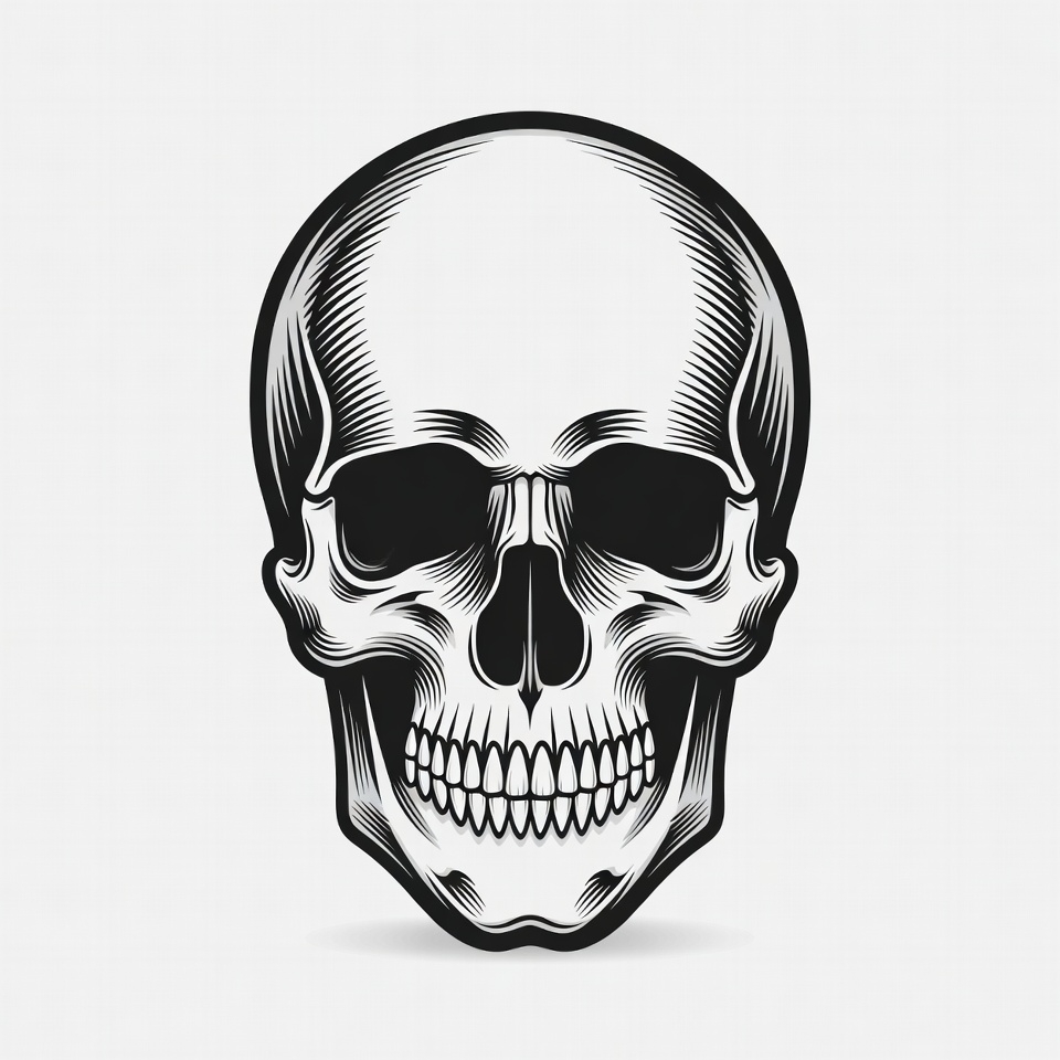 Black and White Skull Illustration