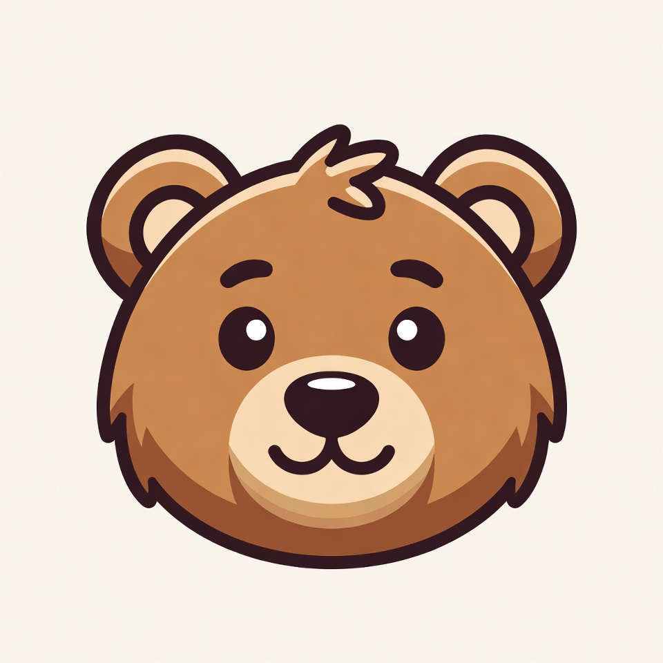 adorable bear, animal face, big eyes, brown bear, cartoon bear, chibi bear, clipart, cute bear, fluffy fur, illustration, isolated background, kawaii bear, smiling bear, vector bear, teddy bear