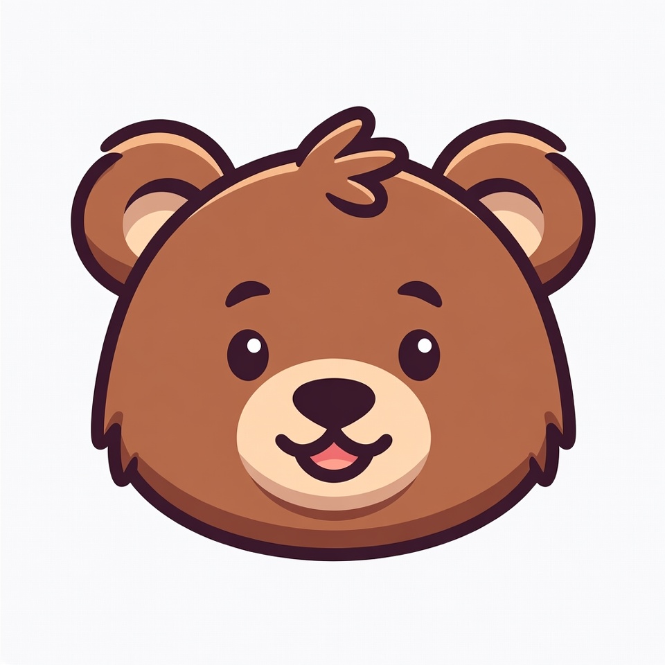 adorable bear, animal illustration, bear face, bear illustration, big eyes, black nose, brown bear, cartoon bear, chibi bear, clipart, digital art, fluffy bear, furry ears, happy bear, isolated background, kawaii bear, mascot bear, smiling bear, vector art, cute bear