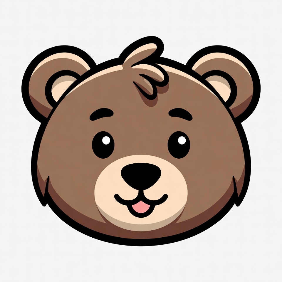 adorable animal, animal, bear face, big eyes, black nose, brown bear, cartoon bear, chibi bear, clipart, fluffy fur, fun bear, illustration, isolated background, kawaii bear, perky ears, smiling bear, teddy bear, tongue out, vector art, cute bear