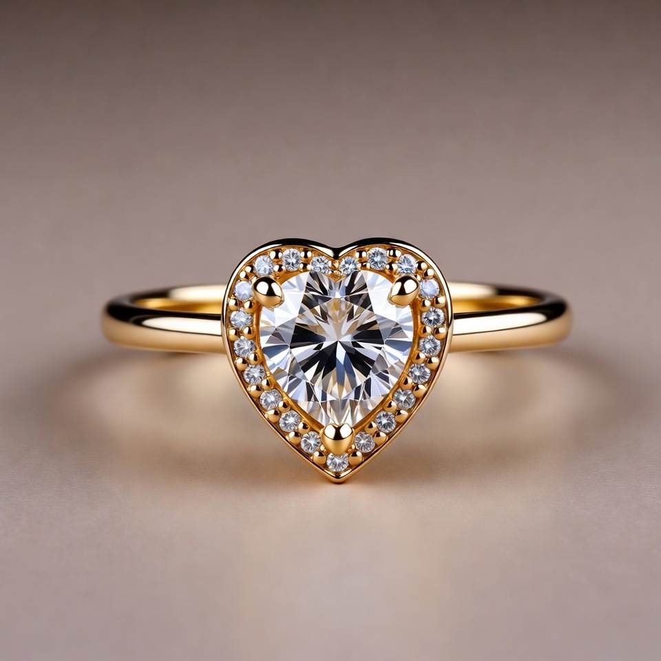 Heart-Shaped Diamond Gold Ring
