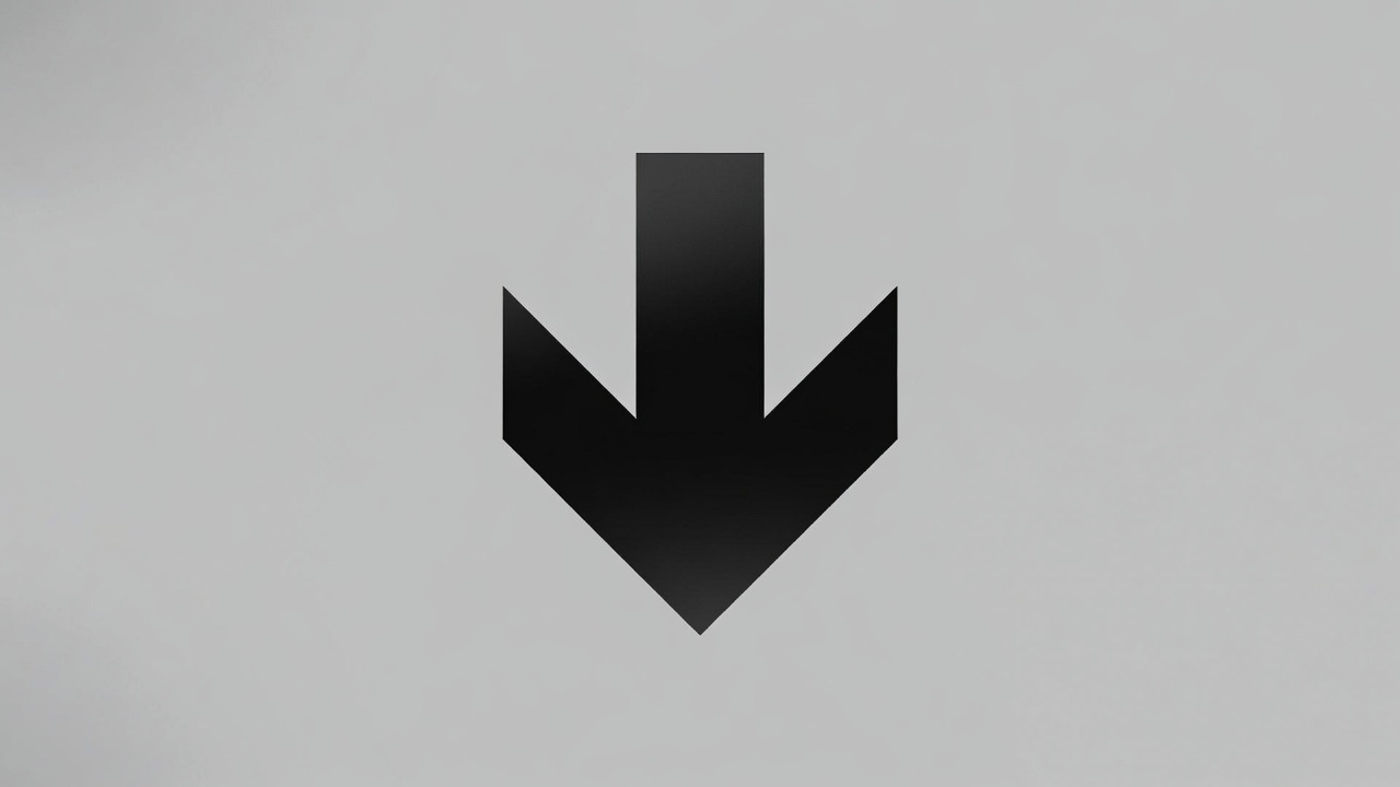 A bold black downward-pointing arrow is centered on a light gray background. The arrow features a simple, geometric design with sharp edges.