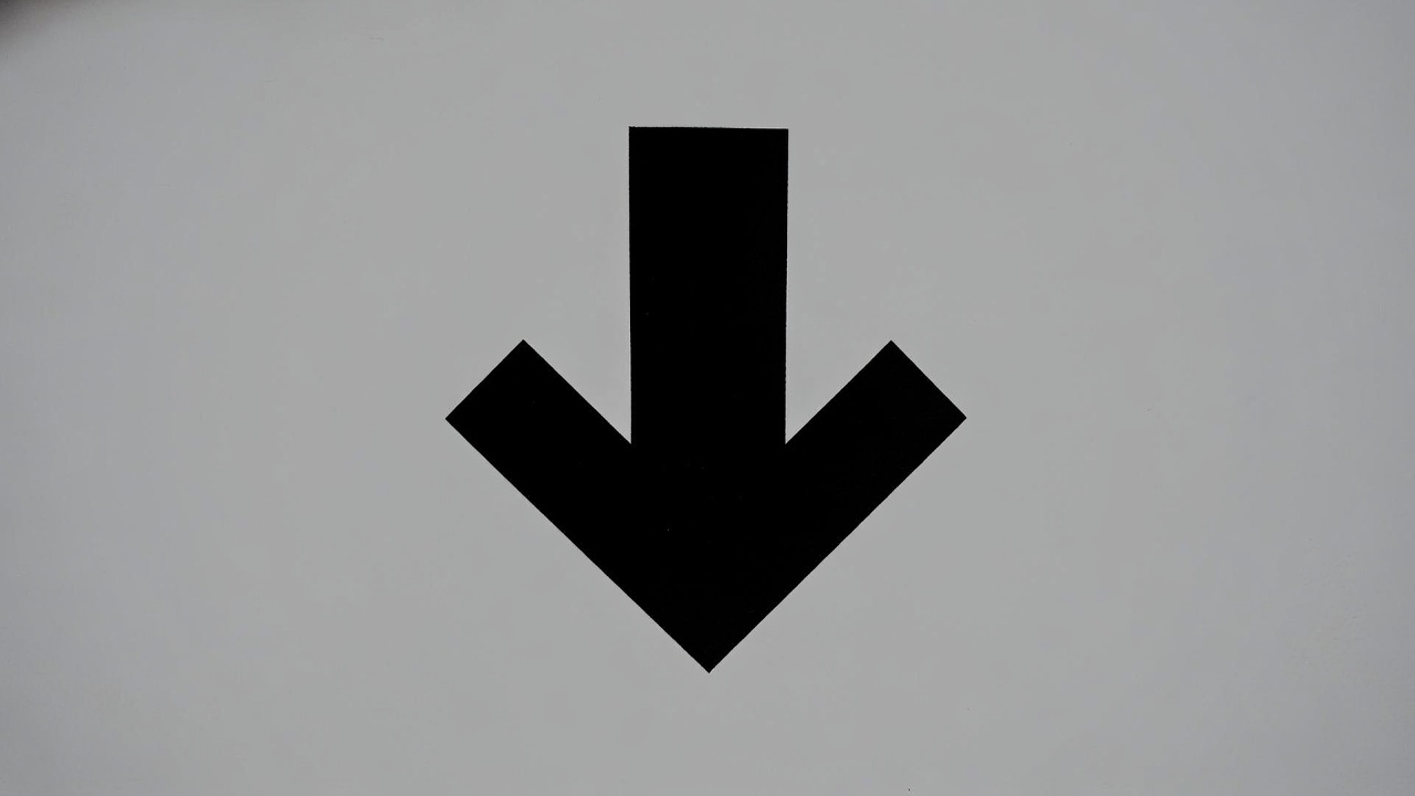 arrow icon, black arrow, bold arrow, clipart, direction, downward arrow, graphic, gray background, illustration, pointer, simple icon, symbol, vector, down arrow