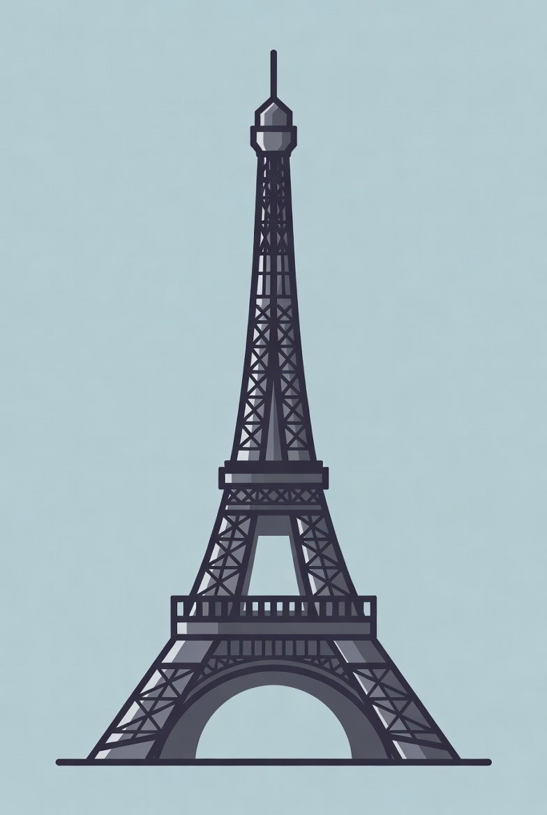 France icon, Paris landmark, architecture, blue background, clipart, illustration, isolated background, landmark, line art, simple drawing, tourist attraction, tower, travel symbol, vector graphic, Eiffel Tower