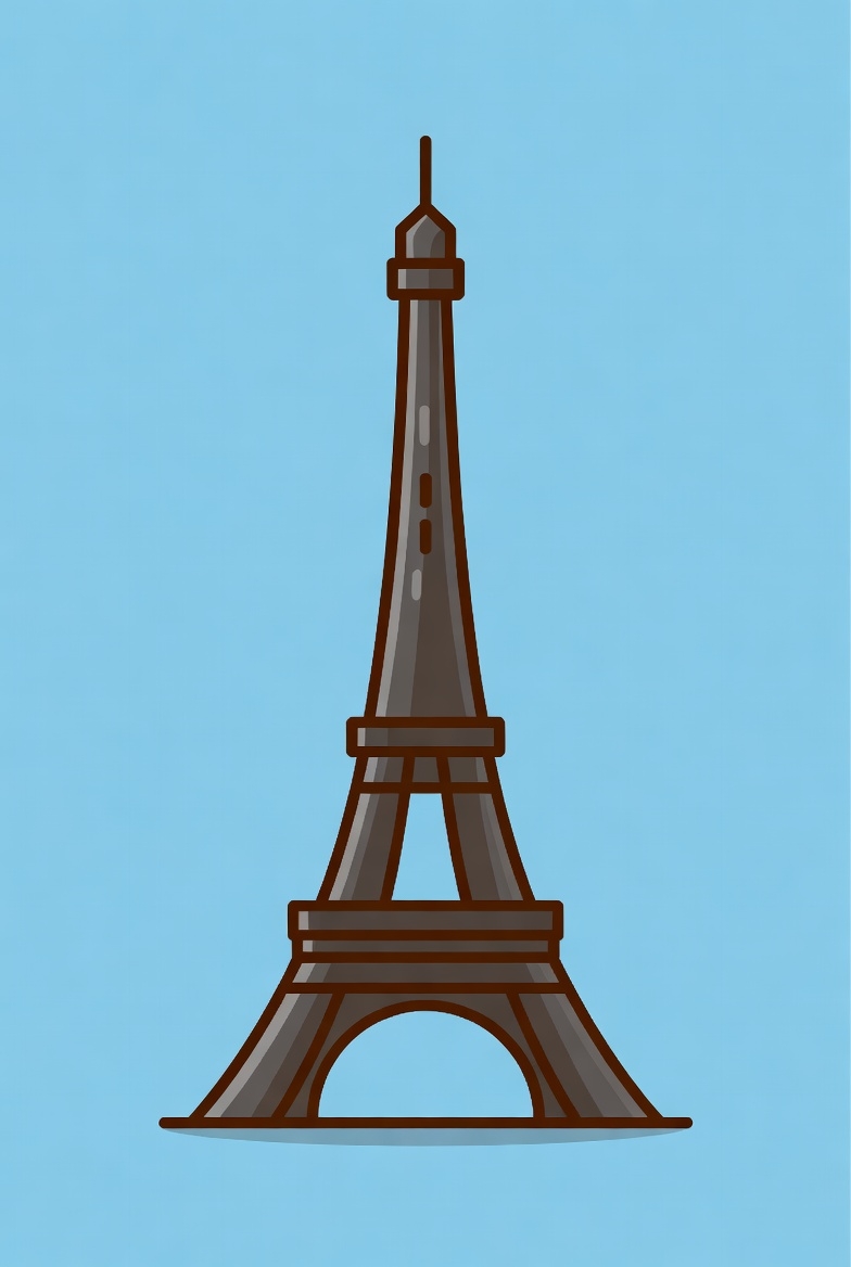 France, Paris, architecture, blue background, clipart, icon, illustration, isolated background, landmark, line art, simple drawing, tourist attraction, travel, vector, Eiffel Tower