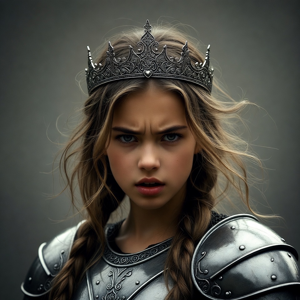 Young woman in crown and armor