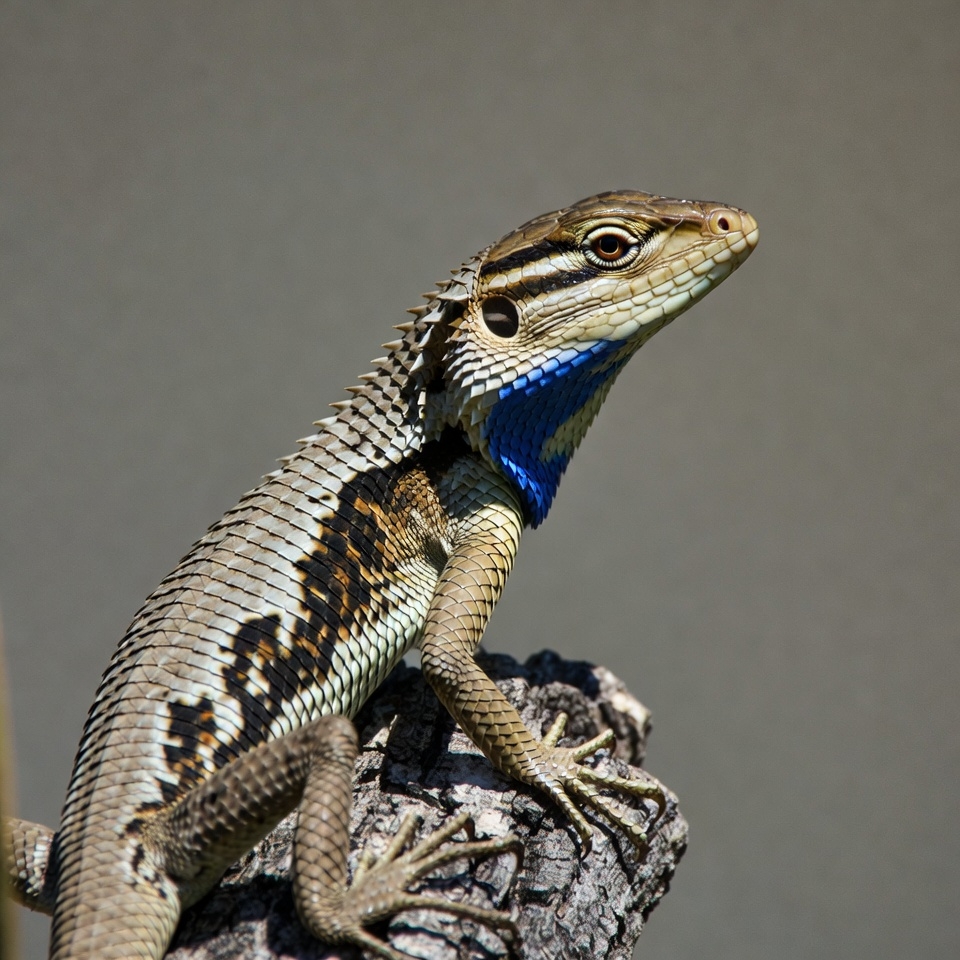 animal, blue throat, brown lizard, claws, isolated background, reptile, rock, scales, spiny crest, stripes, tan scales, wildlife, lizard