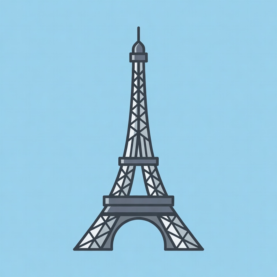 France, Paris, architecture, blue background, clipart, flat design, icon, illustration, isolated, landmark, line art, tourist attraction, travel, vector, Eiffel Tower