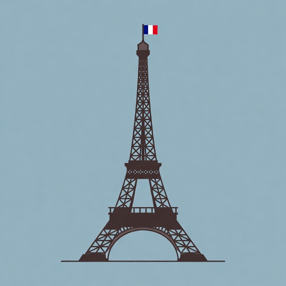 France, France symbol, French flag, Paris, architecture, blue background, clipart, flag, illustration, isolated background, landmark, line art, simple drawing, symbol, tourist attraction, tower, travel icon, tricolor flag, vector art, Eiffel Tower