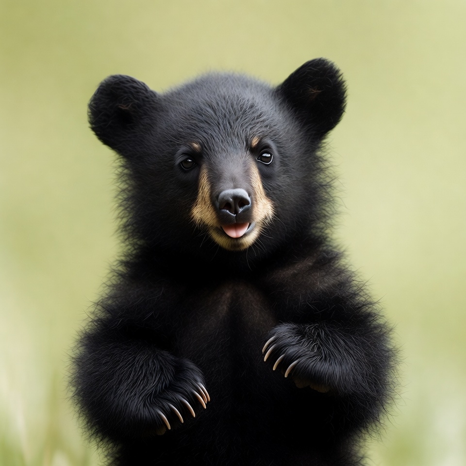 adorable cub, animal, bear cub, bear face, black bear, claws, cute bear, fluffy fur, green background, isolated background, paws raised, standing bear, wildlife, young bear, baby bear