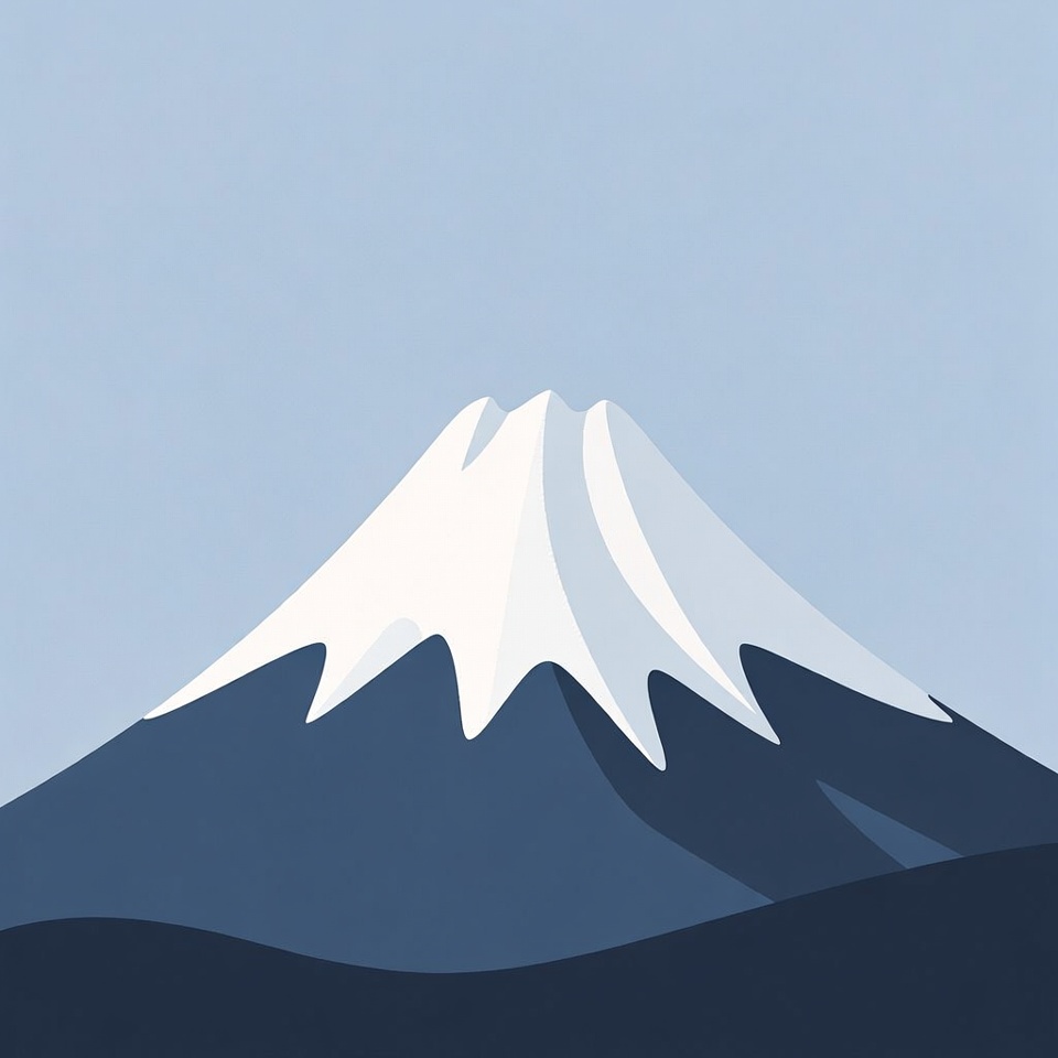 Fuji mountain, Japan volcano, Japanese landmark, blue sky, clipart, flat design, illustration, isolated background, minimalistic, mountain, snow peak, snow-capped, vector art, volcano, Mount Fuji