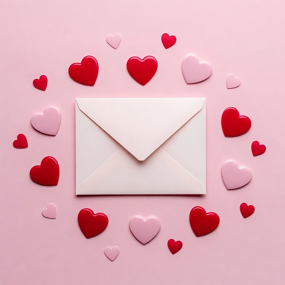 White Envelope Surrounded by Hearts
