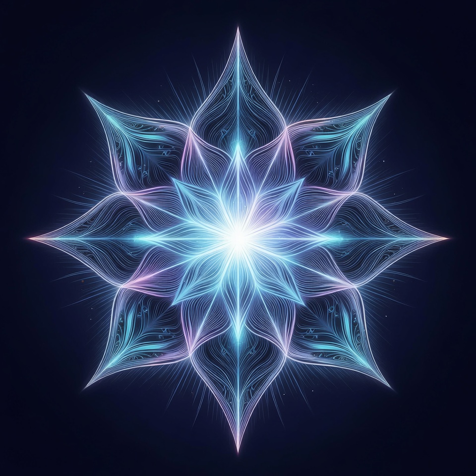 blue snowflake, crystal pattern, digital art, fractal, glowing snowflake, ice crystal, illustration, isolated background, mandala, neon glow, purple accents, snow crystal, symmetrical design, winter, snowflake