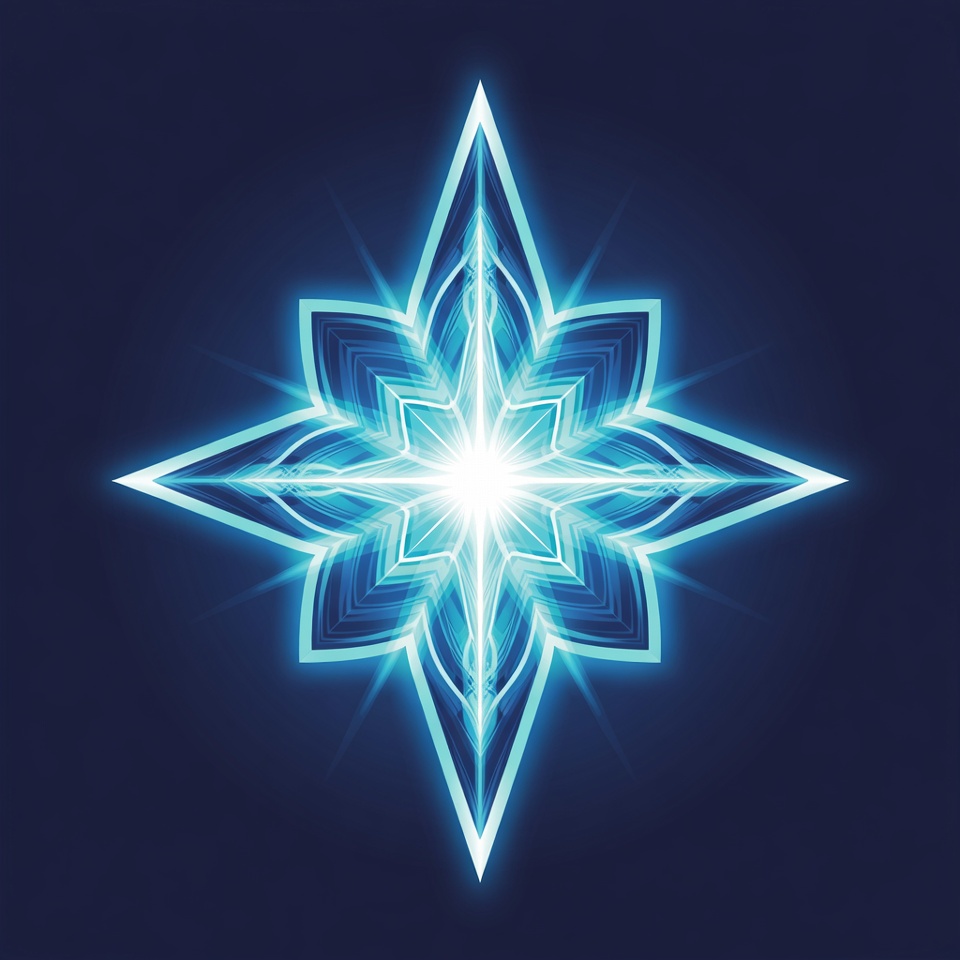 bright light, clipart, cyan glow, dark background, digital art, energy burst, fractal star, geometric design, glowing star, illustration, isolated background, luminous effect, navy backdrop, neon blue, petal pattern, radiant light, shiny star, star shape, starburst, blue star