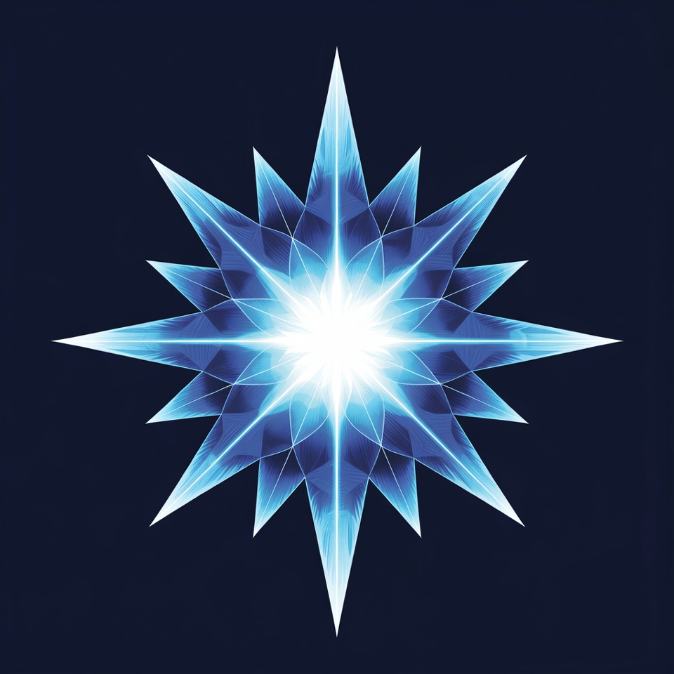clipart star, dark background, digital art, facets, geometric star, glowing star, isolated background, navy background, radiant light, sharp points, star illustration, starburst, vector star, white core, blue star