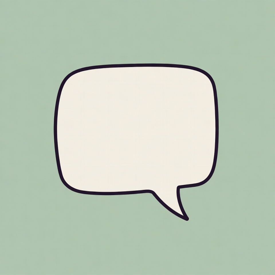 A simple white speech bubble with a black outline floats against a light green background. The bubble has a curved tail pointing downward, indicating spoken words. It is a clean, minimalist line art illustration.