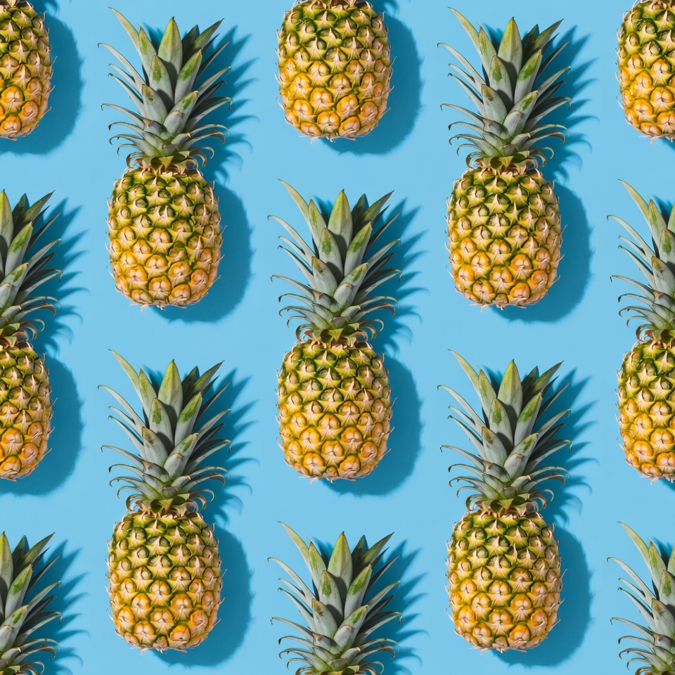 Pineapples on Blue Background
