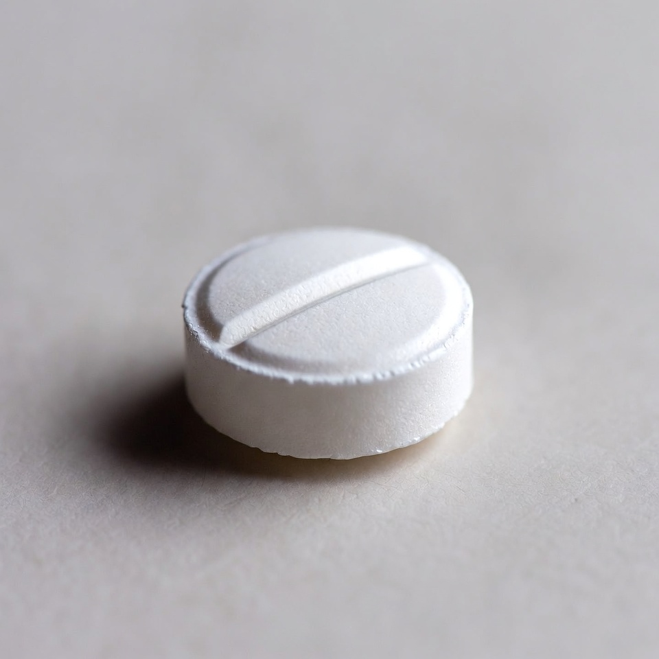 White Round Pill on Gray Surface