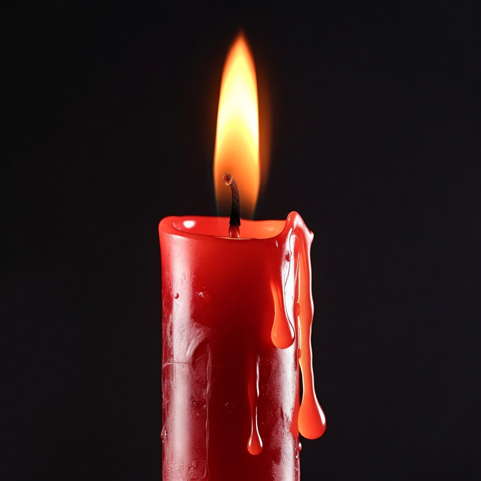 Red Burning Candle with Wax Dripping