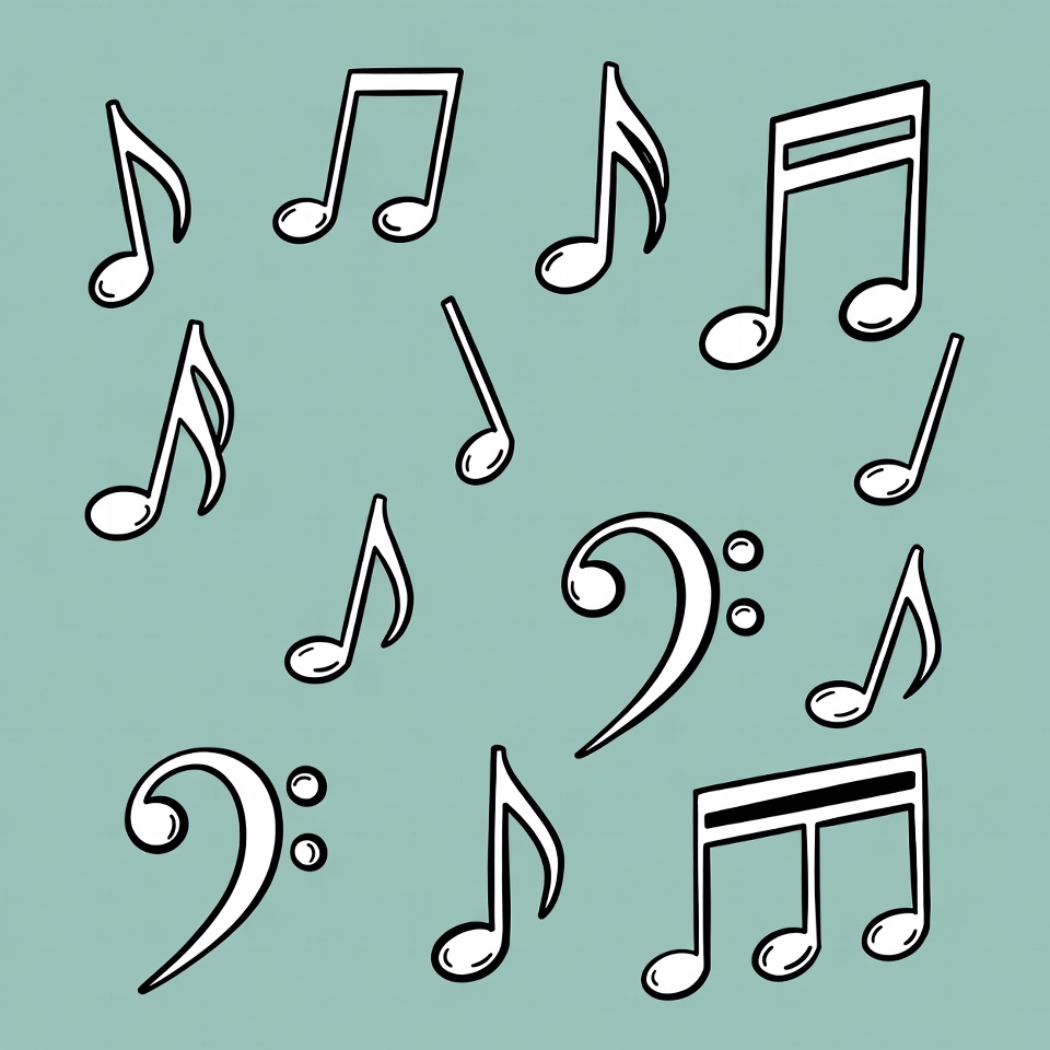 Cartoon musical notes scattered