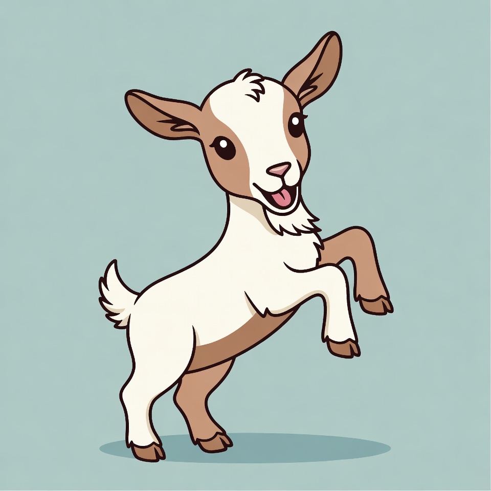 animal illustration, big eyes, brown goat, cartoon goat, clipart, cute goat, farm animal, floppy ears, goat, goat kid, illustration, isolated background, kid goat, playful goat, rearing goat, smiling goat, standing goat, white goat, young goat, baby goat