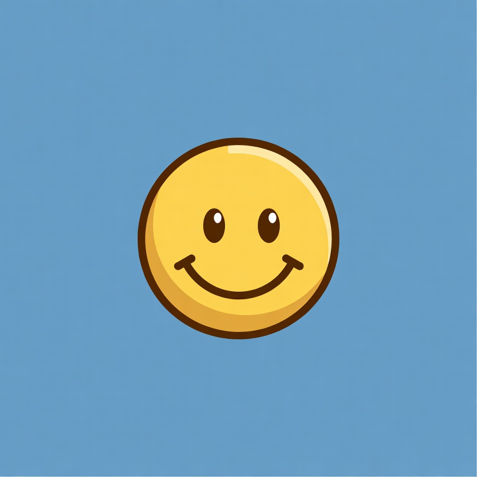 A bright yellow smiling face emoji with black outline eyes and a wide curved mouth. It features a simple, cheerful expression on a solid blue background. The illustration is clean and cartoonish.
