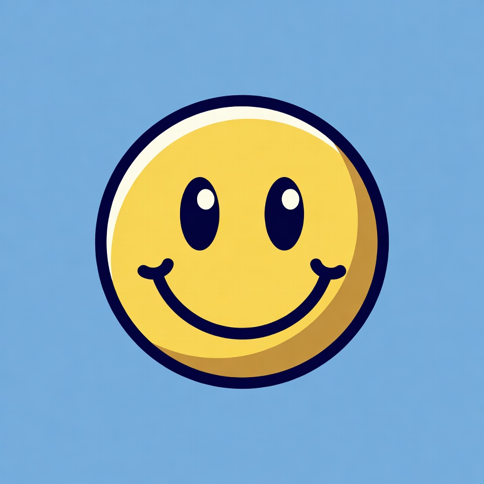 black outline, blue background, cartoon face, cheerful expression, clipart, glossy yellow, happy emoticon, happy face, illustration, isolated background, round face, smiling emoji, vector art, yellow emoticon, smiley face
