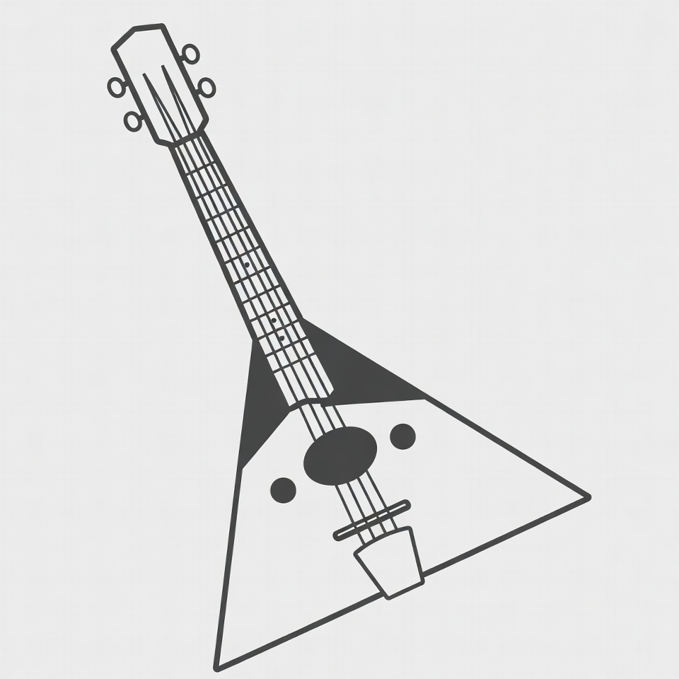 cartoon banjo, clipart, illustration, isolated background, line drawing, musical instrument, simple drawing, sound hole, strings, triangular body, vector art, banjo