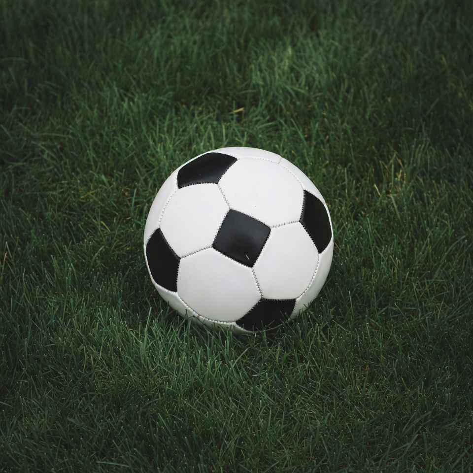 ball, black white ball, field, football, grass, green grass, outdoor, pentagon pattern, soccer, soccer field, sports, sports equipment, sports gear, turf, soccer ball