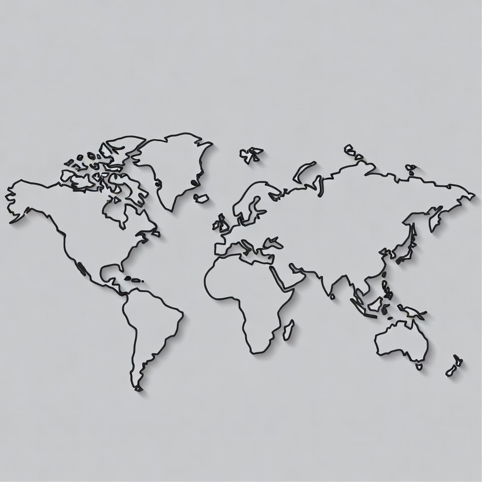 Earth, black line, clipart, continents, geography, globe, illustration, isolated background, line art, map graphic, minimalist map, outline, simple map, vector, world map