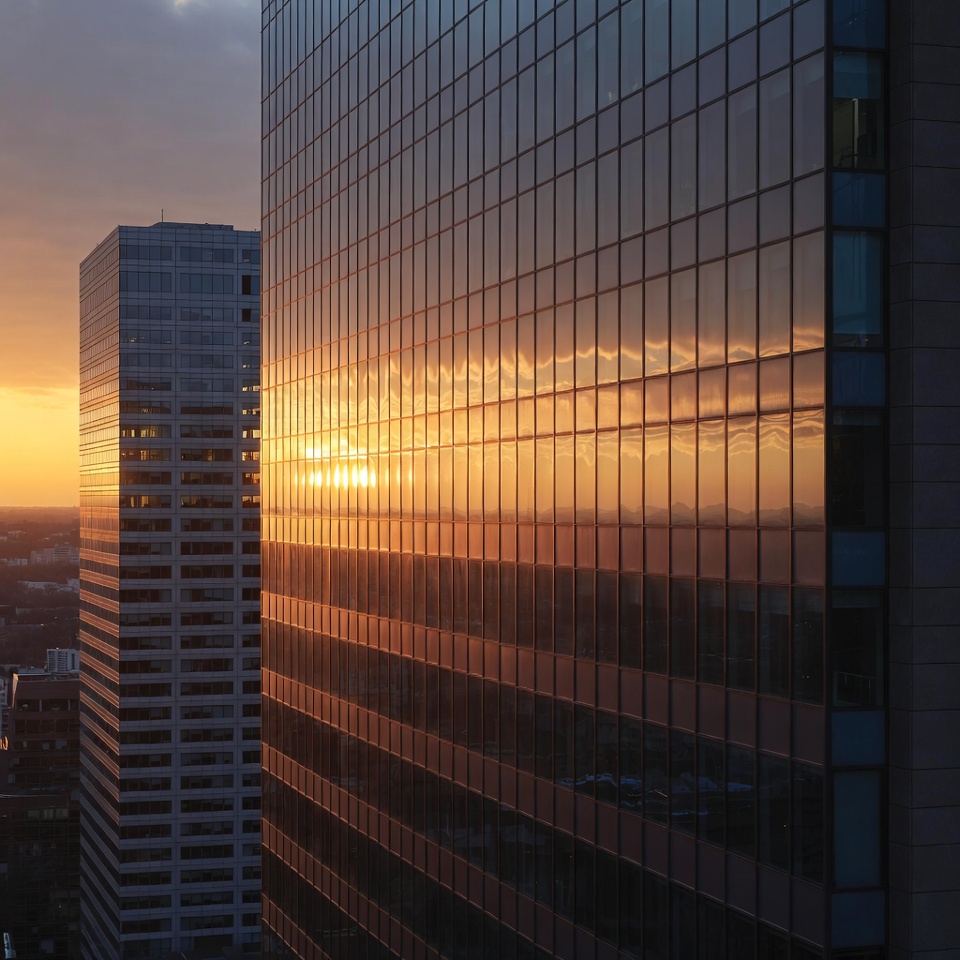 Sunset Reflecting on Glass Skyscrapers