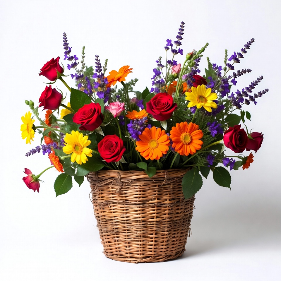 Colorful Flowers in Wicker Basket