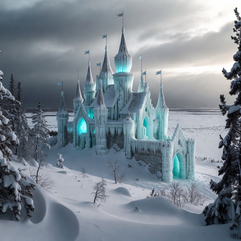 Ice Castle in Snowy Landscape