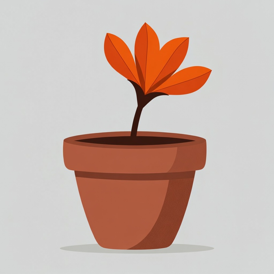 broad leaves, clipart, flower pot, gray background, houseplant, illustration, isolated background, leaves, orange leaves, plant, potted plant, simple drawing, stem, terracotta pot, vector art, orange plant