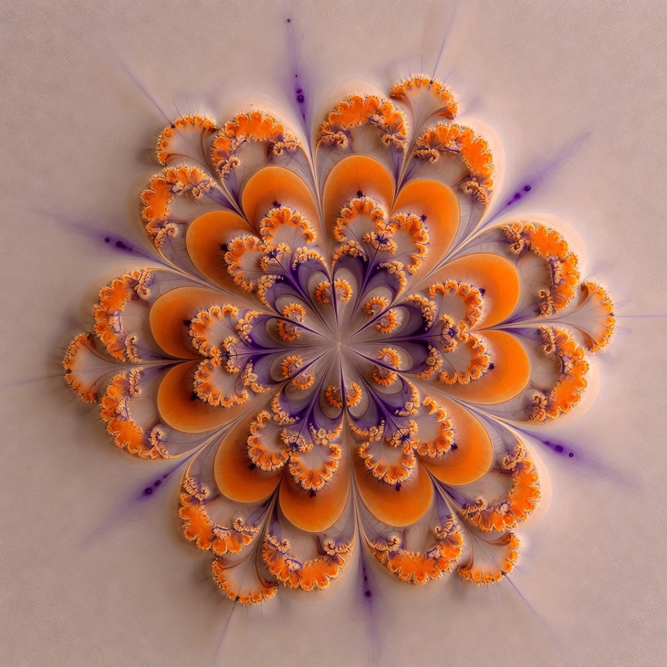 CGI flower, abstract art, abstract flower, artistic flower, beige background, digital art, feathery edges, floral fractal, flower illustration, fractal art, fractal design, fractal graphics, intricate pattern, orange flower, orange petals, purple flower, purple petals, radiant petals, symmetric flower, fractal flower