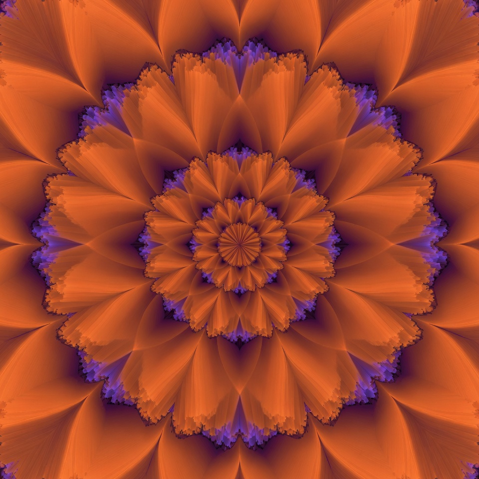 abstract, artwork, bloom, circular, colorful, decorative, design, floral, flower, fractal, geometric, gradient, illustration, isolated background, orange, pattern, petals, psychedelic, purple, radial, radiating, symmetrical, texture, vibrant, mandala