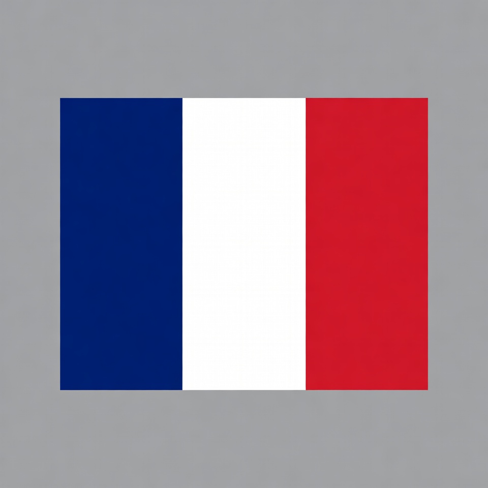 The French national flag features three vertical stripes in blue, white, and red. It is centered against a solid gray background. The flag's colors are vibrant and evenly proportioned.