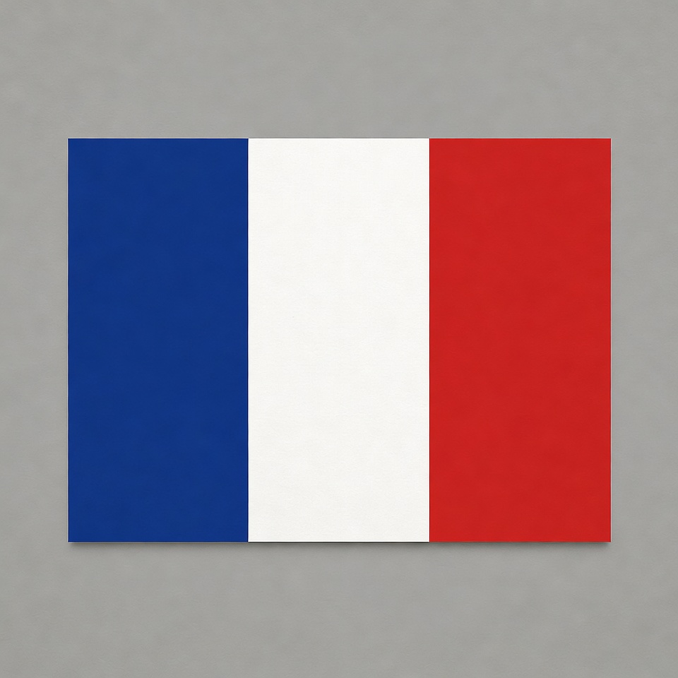 The French national flag features three vertical stripes in blue, white, and red colors. It is displayed against a plain gray background. The flag has a clean, bold design with equal-sized panels.