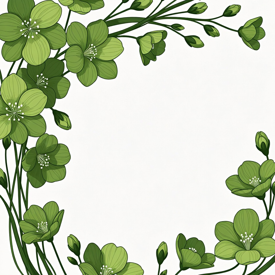 Green Floral Corner Border Illustration