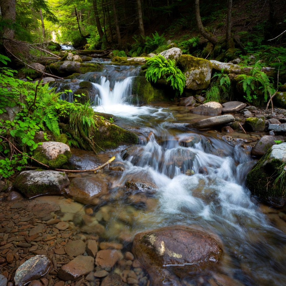 Forest Stream with Cascading Waterfall
