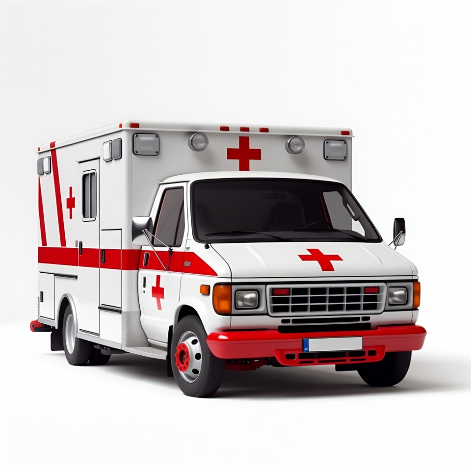 3D render, cross symbol, emergency lights, emergency vehicle, hospital transport, isolated background, medical truck, paramedic van, red accents, red cross, rescue vehicle, siren lights, white ambulance, white van, ambulance