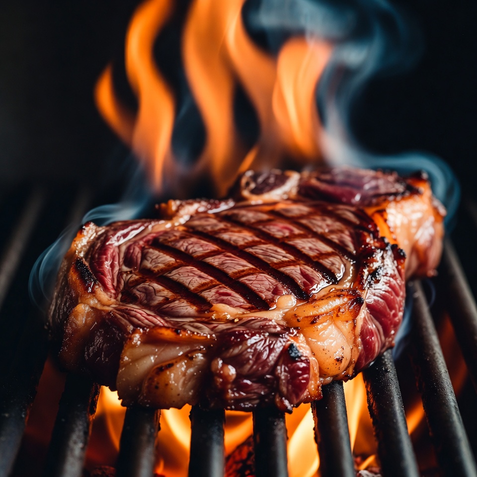 Grilled Ribeye Steak on Flames