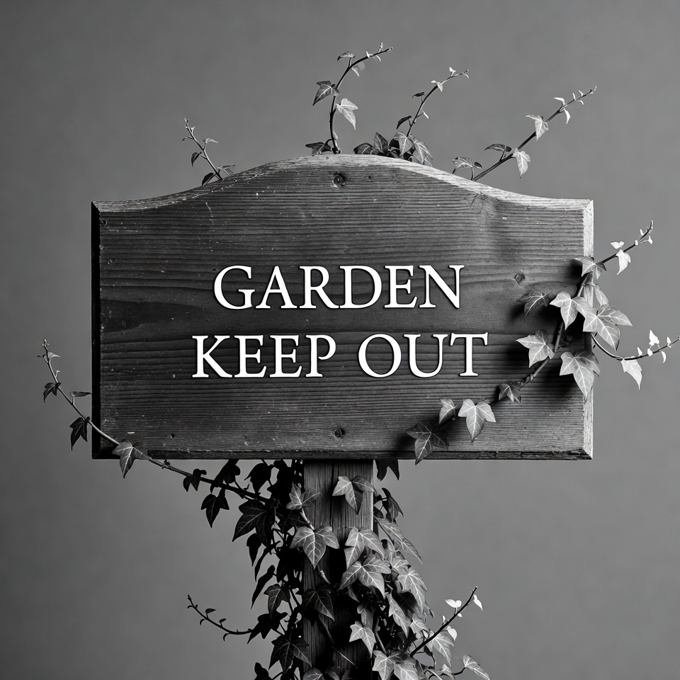 Ivy-Covered Garden Keep Out Sign