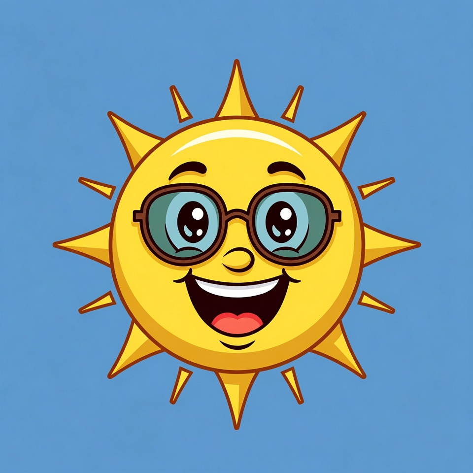 Cartoon Smiling Sun with Sunglasses
