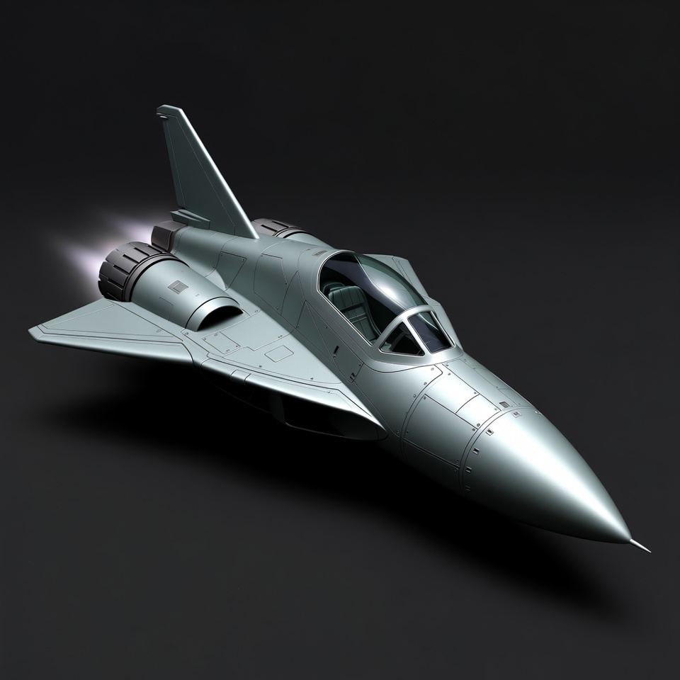 3D render, afterburners, aircraft, airplane, aviation, blue flames, bubble canopy, combat jet, fighter plane, gray metal, isolated background, jet aircraft, jet engines, military jet, model airplane, silver jet, sleek design, thrust flames, twin tails, fighter jet