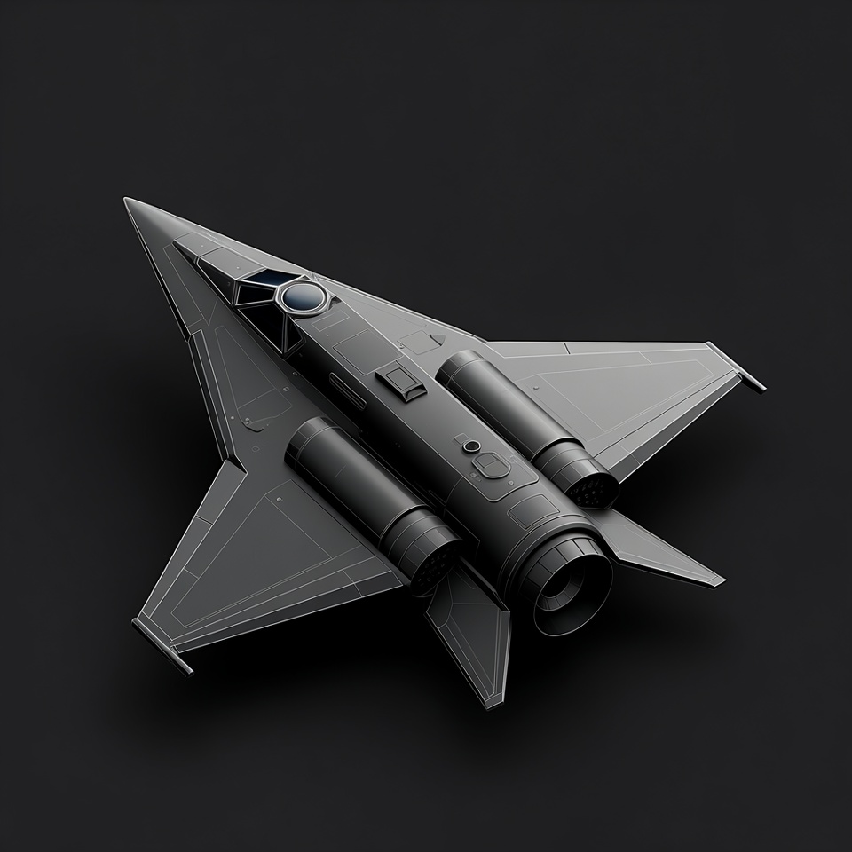 3D model, 3D render, aerospace design, aircraft model, airplane, angular wings, aviation, cockpit canopy, digital art, futuristic jet, gray jet, isolated background, jet engines, jet nozzle, military jet, modern jet, pointed nose, render, sci-fi plane, sleek fighter, spacecraft, stealth aircraft, fighter jet